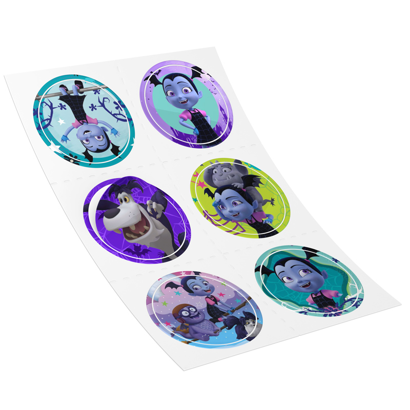 Στρογγυλά αυτοκόλλητα με σχέδιο Βαμπιρίνα, για να διακοσμήσεις τα αντικείμενα του πάρτυ ή να τα δώσεις ως ενθύμιο δώρο στους μικρούς καλεσμένους!