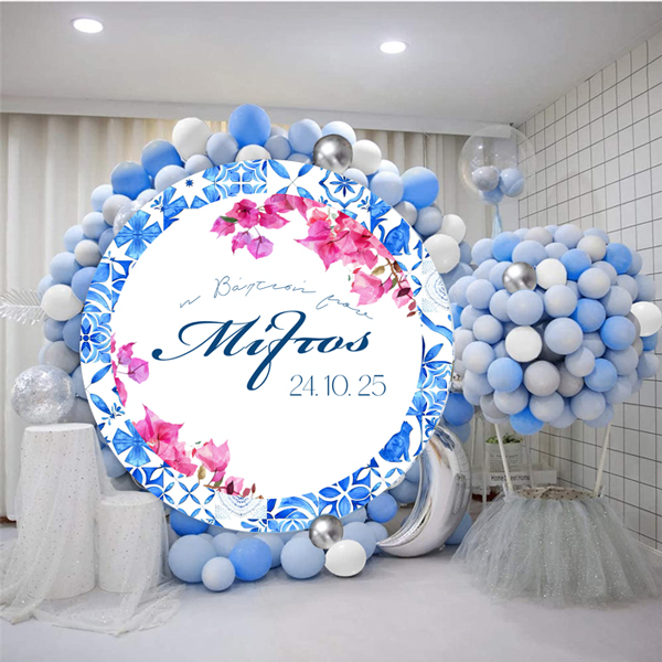 Στρογγυλή αφίσα από μουσαμά με θέμα Βουκαμβίλια 1,30m, για να διακοσμήσετε το χώρο της βάπτισης του μωρού σας!