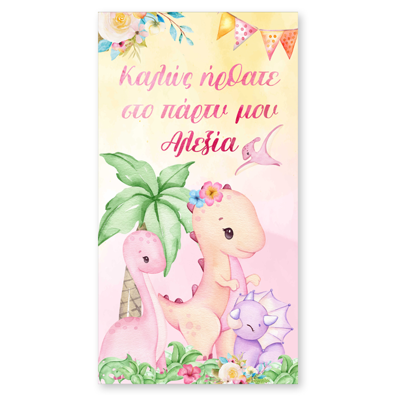 Αφίσα πάρτυ Δεινοσαυράκι κορίτσι