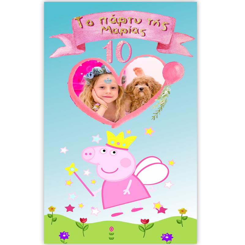Μεγάλη διακοσμητική αφίσα για πάρτυ γενεθλίων με θέμα Πέππα το Γουρουνάκι και εκτυπωμένη τη φωτογραφία του παιδιού!