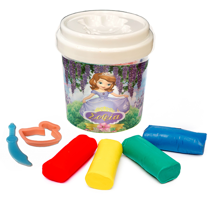 Βαζάκι με πλαστελίνες και κουπ-πατ και θέμα Πριγκίπισσα Σοφία! Ιδανικό για δωράκια στους μικρούς καλεσμένους του πάρτυ: το πλαστοζυμαράκι θα τους χαρίσει ατελείωτες ώρες χαράς και δημιουργίας!