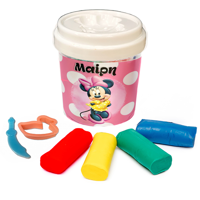 Βαζάκι με πλαστελίνες και κουπ-πατ και θέμα Minnie Mouse! Ιδανικό για δωράκια στους μικρούς καλεσμένους του πάρτυ: το πλαστοζυμαράκι θα τους χαρίσει ατελείωτες ώρες χαράς και δημιουργίας!
