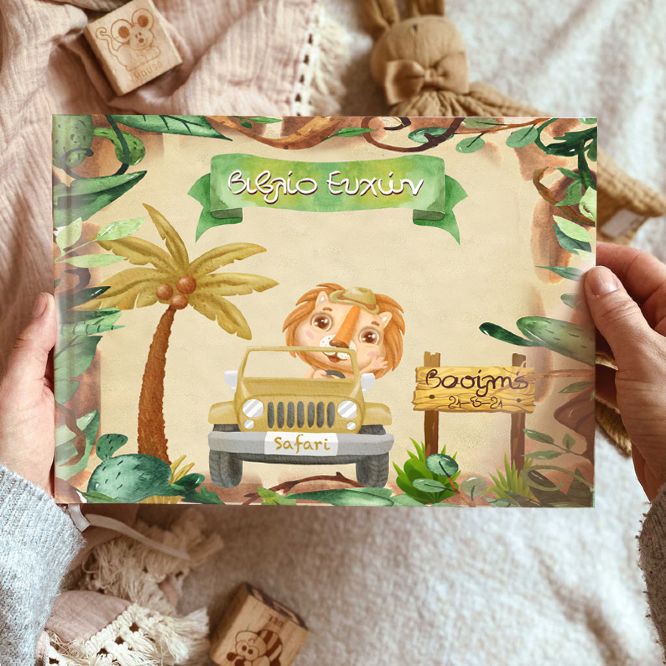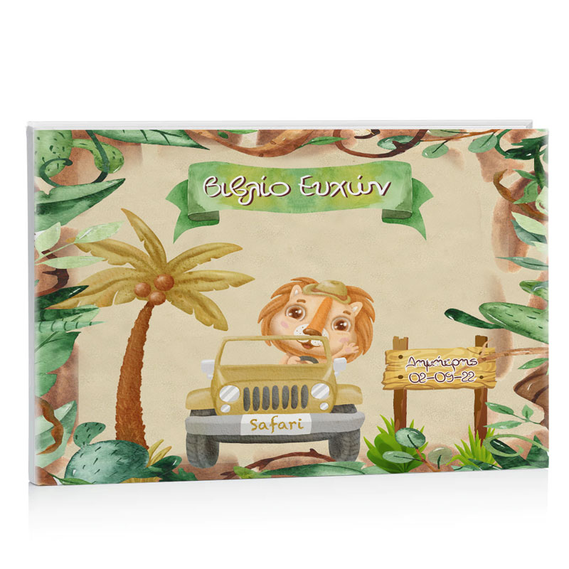Εντυπωσιακό, χειροποίητο Βιβλίο Ευχών με θέμα το Σαφάρι, για τη Βάπτιση του μωρού σας! Κρατήστε για πάντα τις ευχές των καλεσμένων σας σε ένα όμορφο ευχολόγιο.