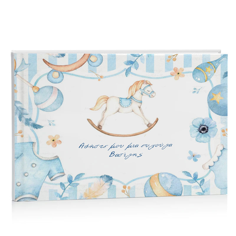 Εντυπωσιακό ευχολόγιο με θέμα το Αλογάκι για τη βάπτιση του μωρού σας! Κρατήστε για πάντα τις ευχές των καλεσμένων σας σε ένα όμορφο ευχολόγιο.
