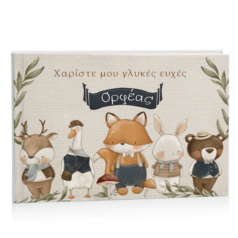 Εντυπωσιακό, χειροποίητο Βιβλίο Ευχών Woodland για τη βάπτιση του μωρού σας! Κρατήστε για πάντα τις ευχές των καλεσμένων σας σε ένα όμορφο ευχολόγιο.