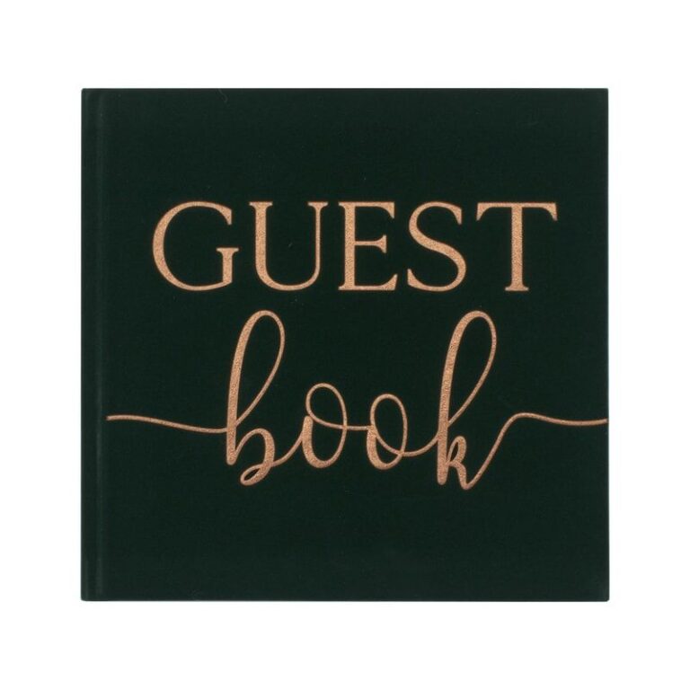 Εντυπωσιακό βελούδινο Βιβλίο Ευχών σε σκούρο πράσινο χώμα και rosegold γράμματα στο εξώφυλλο, για να κρατήσετε για πάντα τις ευχές των καλεσμένων!