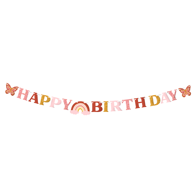 Boho Γιρλάντα Happy Birthday με ουράνιο τόξα και πεταλούδες, για να διακοσμήσετε το πάρτυ γενεθλίων!