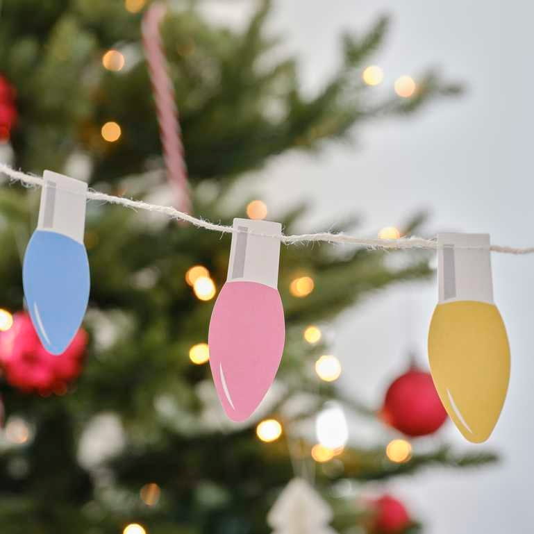 Προσθέστε μια διασκεδαστική και πολύχρωμη πινελιά στην γιορτινή διακόσμηση του χώρου με αυτή την χάρτινη γιρλάντα με σχέδιο χριστουγεννιάτικα λαμπάκια! Ιδανική για τοίχους, πόρτες, τζάκια, θα γεμίσει τον χώρο σας με γιορτινή διάθεση.