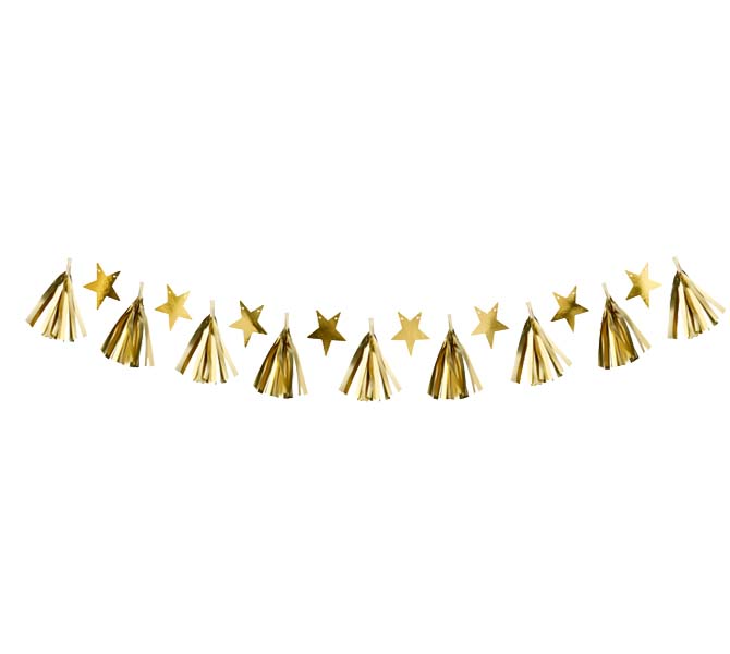 Γιρλάντα χρυσά αστέρια & φουντίτσες 1,3m