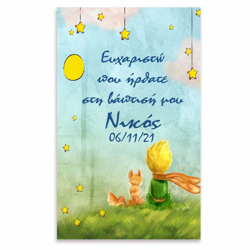 Μεγάλη αφίσα για να διακοσμήσετε το χώρο του πάρτυ ή της βάπτισης, με θέμα τον Μικρό Πρίγκιπα και εκτυπωμένο το μήνυμα που θέλετε!