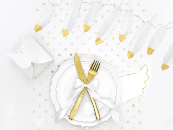 Γιρλάντα με λευκα φύλλα και χρυσές λεπτομέρειες στο τελέιωμα, για τη διακόσμηση του γάμου, της βάπτισης ή της εκδήλωσης!