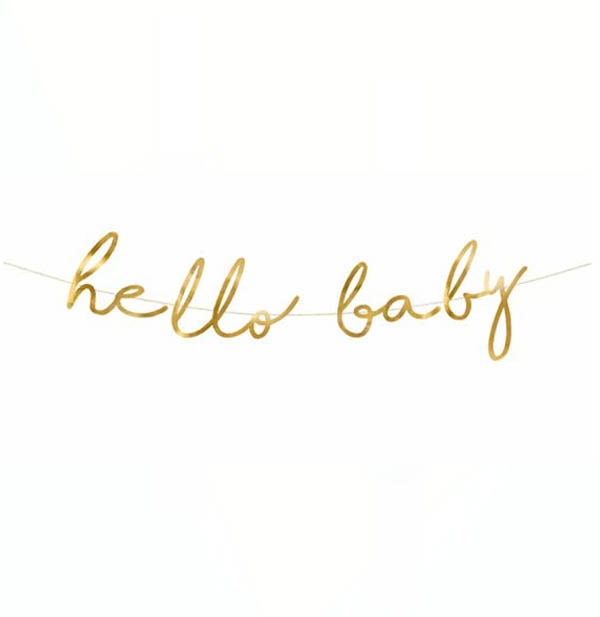 Διακοσμητικό μπάνερ χρυσό “Hello Baby”, για να δημιουργήσεις την πιο εντυπωσιακή διακόσμηση για το καλωσόρισμα του μωρού σου.