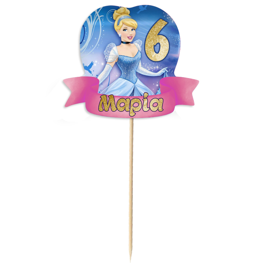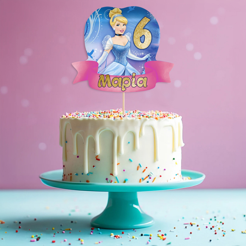 Διακοσμητικό Topper Τούρτας Σταχτοπούτα για να στολίσετε την τούρτα, με το όνομα της επιλογής σας τυπωμένο επάνω και να εντυπωσιάσετε!