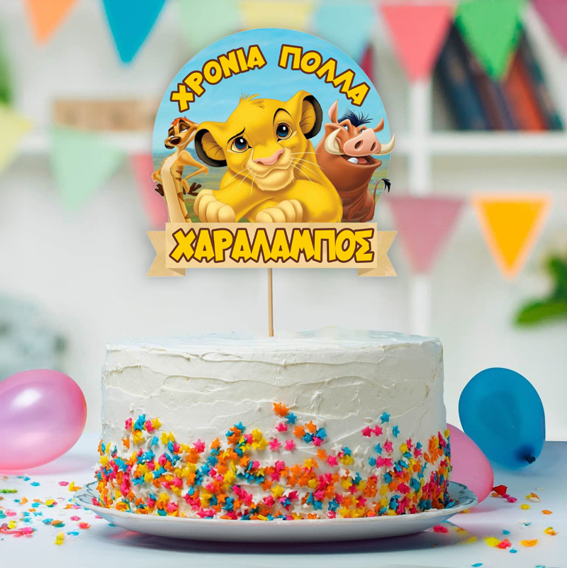 Διακοσμητικό Topper Τούρτας Lion King για να στολίσετε την τούρτα, με το όνομα της επιλογής σας τυπωμένο επάνω και να εντυπωσιάσετε!