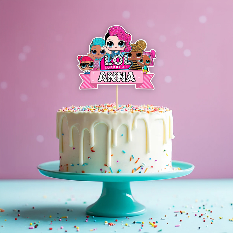 Διακοσμητικό Topper Τούρτας LOL Surprise για να στολίσετε την τούρτα, με το όνομα της επιλογής σας τυπωμένο επάνω και να εντυπωσιάσετε!