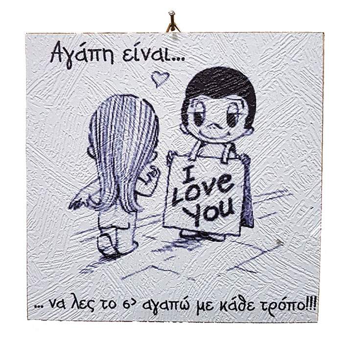 Ξύλινο Vintage καδράκι Βαλεντίνου με μήνυμα ‘Αγάπη είναι… Να λες το Σ’ αγαπώ με κάθε τρόπο’. Χαρίστε ένα πρωτότυπο και όμορφο δωράκι για να δείξετε την αγάπη σας την ημέρα των ερωτευμένων!