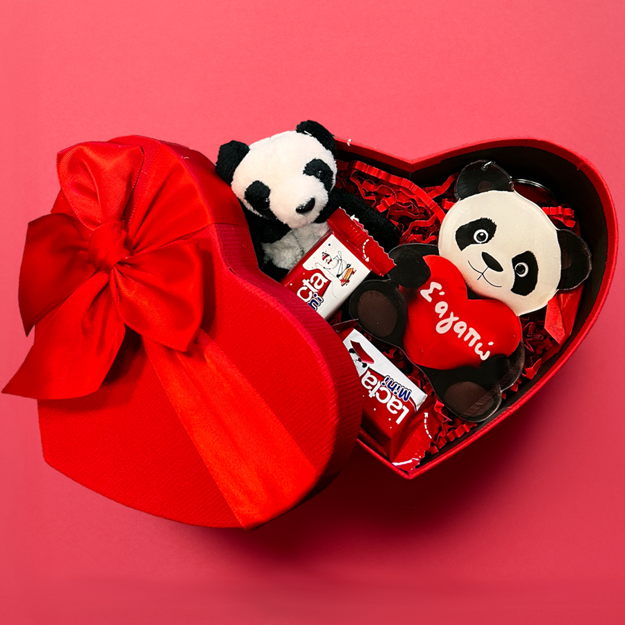 Αν το άλλο σου μισό λατρεύει τα αρκουδάκια panda, αυτό το χαριτωμένο σετ δώρου σε κουτάκι καρδιά είναι το τέλειο δώρο για να δείξεις την αγάπη σου!