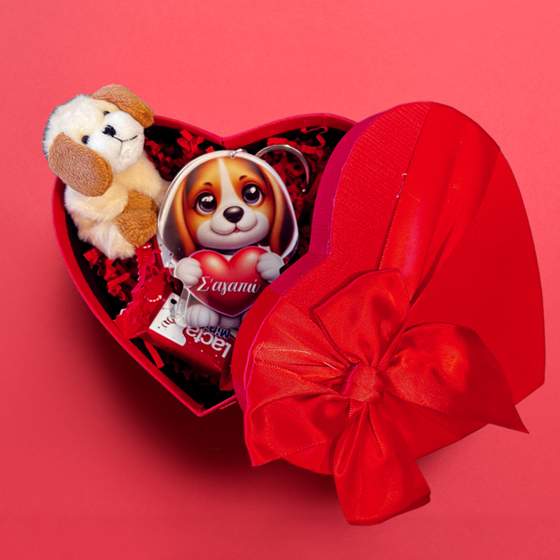 Αν το άλλο σου μισό λατρεύει τα χαδιάρικα σκυλάκια, αυτό το χαριτωμένο σετ δώρου σε κουτάκι καρδιά είναι το τέλειο δώρο για να δείξεις την αγάπη σου!