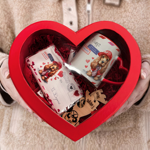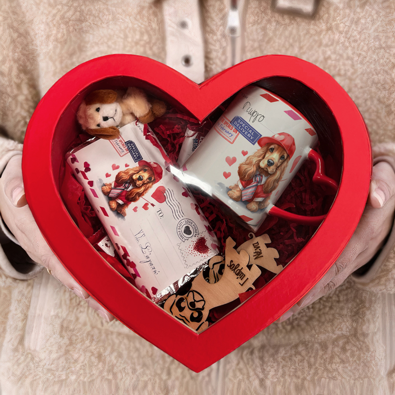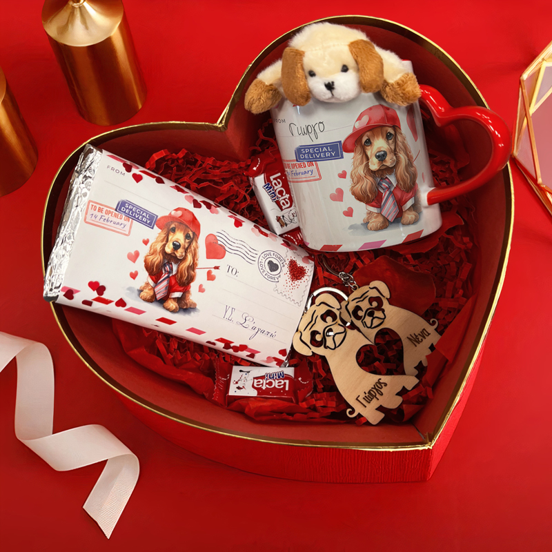Αν το άλλο σου μισό λατρεύει τα κουταβάκια, αυτό σετ δώρου σε κουτάκι καρδιά είναι το τέλειο δώρο για να “στείλεις” την αγάπη σου!