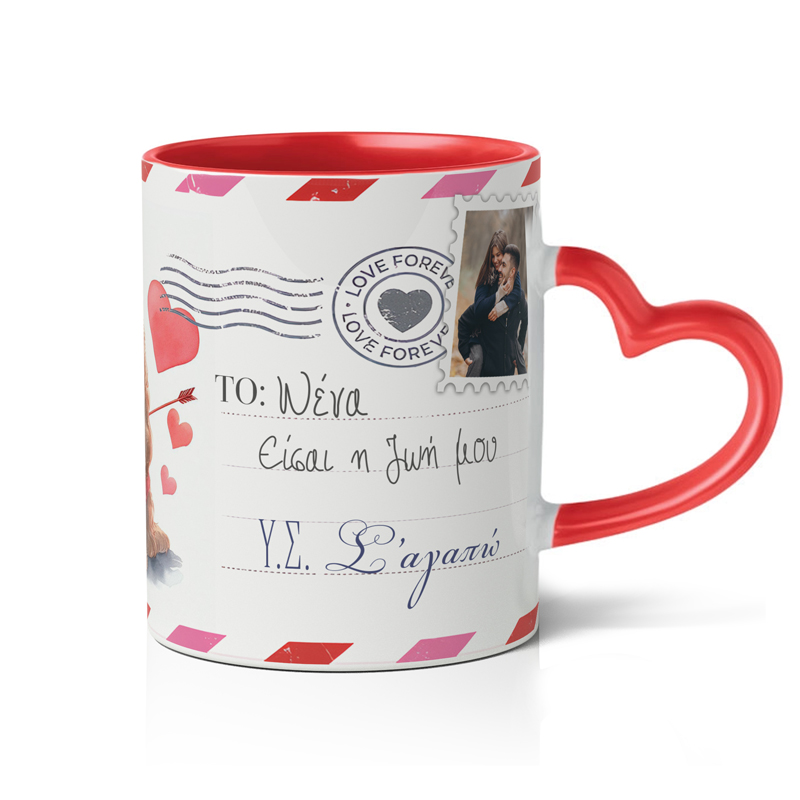 - προσωποποιημένη κούπα πορσελάνης 350 ml με φωτογραφία και χερούλι καρδιά