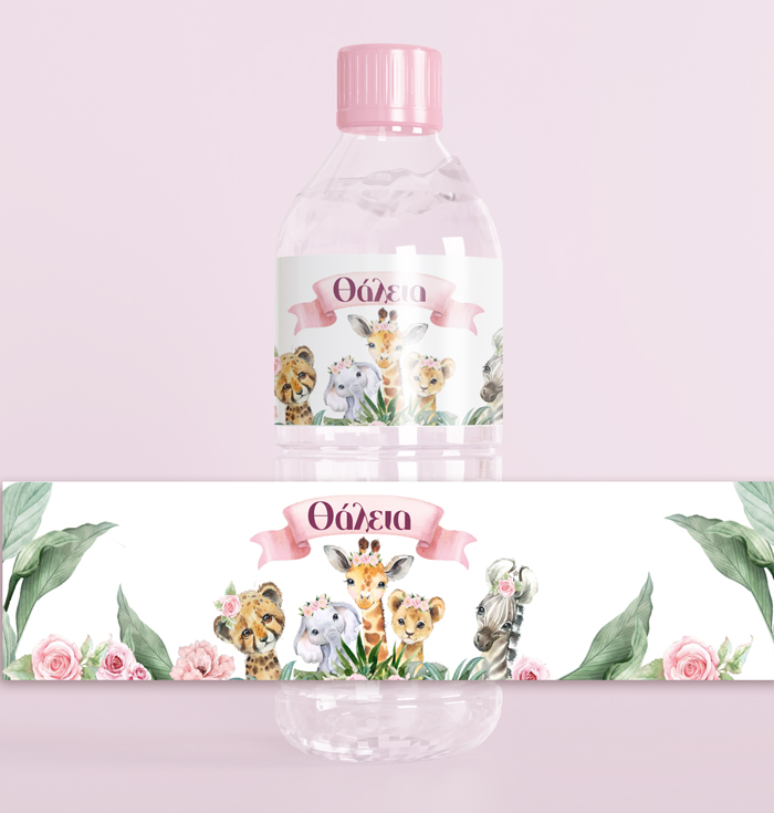Ετικέτες για μπουκάλια νερού – Ζώα της Ζούγκλας Κορίτσι (8 τεμ)