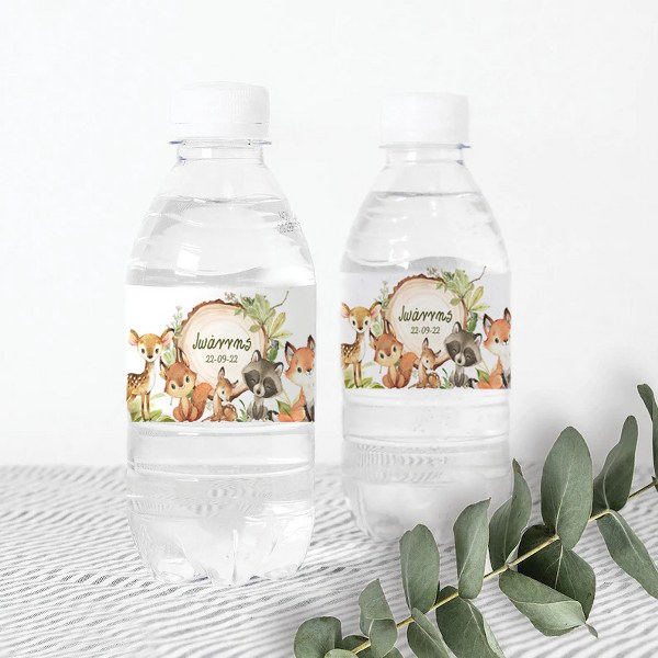 Προσωποποιημένες ετικέτες για μπουκαλάκια νερού με θέμα Ζώα του Δάσους, για να κεραστούν οι καλεσμένοι σας!