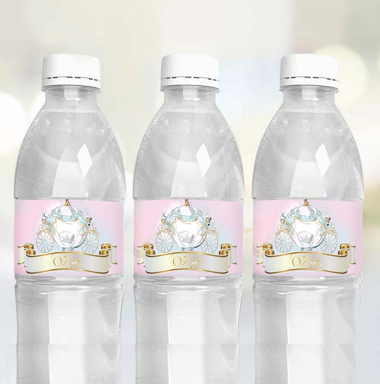 Προσωποποιημένες ετικέτες για μπουκαλάκια νερού με θέμα τη Σταχτοπούτα.