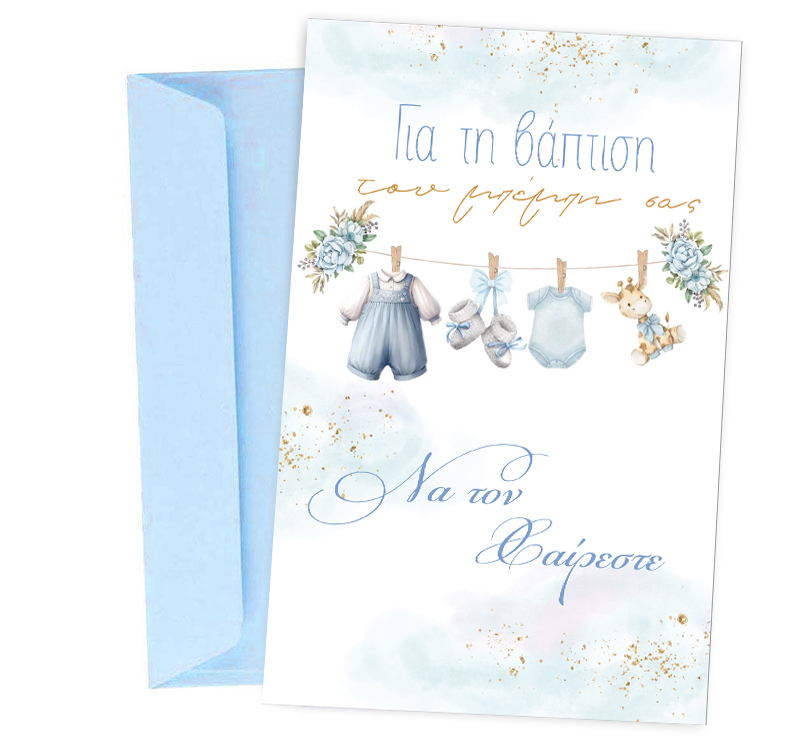 Ευχετήρια Κάρτα Βάπτισης – μπλε Μπουγάδα