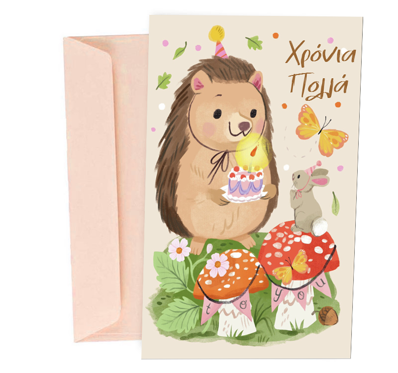 Ευχετήρια κάρτα γενεθλίων “Χρόνια Πολλά”με χαριτωμένο σκαντζοχοιράκι για να ευχηθείς με τον πιο γλυκό τρόπο στους αγαπημένους σου!