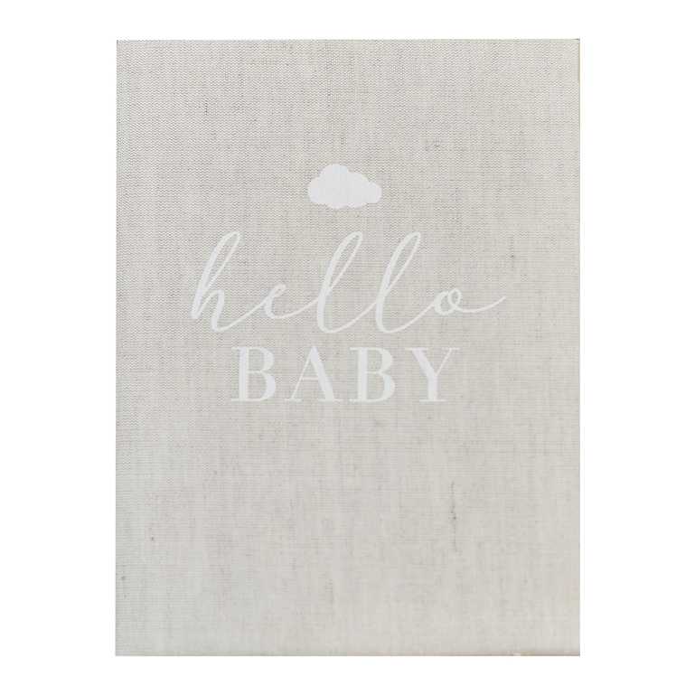 Ημερολόγιο Baby Shower, με λινή επένδυση και μήνυμα ‘Hello Baby’, για να καταγράψουν οι γονείς όλες τις ιδιαίτερες στιγμές που σχετίζονται με τον ερχομό του μωρού τους!