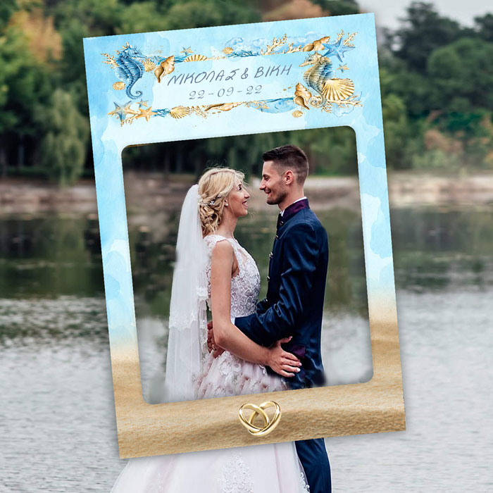 Κάδρο Photo Booth με καλοκαιρινό σχέδιο στα χρώματα της θάλασσας, μια όμορφη ιδέα για να διακοσμήσετε το χώρο του γάμου και ένα μοναδικό φόντο για τις φωτογραφίες σας!