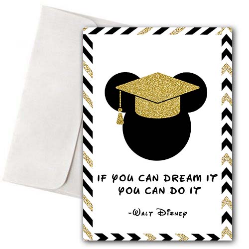 Ευχετήρια Κάρτα για Αποφοίτηση Mickey Grad με quote του Walt Disney. Χαρίστε μαζί με τα μπαλόνια αποφοίτησης, μια πρωτότυπη καρτούλα για να γράψετε τις ευχές σας και ευχηθείτε καλή σταδιοδρομία στο δικό σας απόφοιτο!