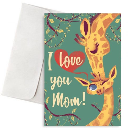 Κάρτα για τη μαμά με χαριτωμένες Καμηλοπαρδάλεις, για να εκφράσετε την αγάπη σας στη μαμά σας με γλυκό τρόπο!