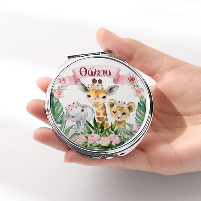 Καθρεφτάκι Ζώα της Ζούγκλας Κορίτσι Ασημί Στρογγυλό για να το κάνεις δώρο στους καλεσμένους της βάπτισης ή του πάρτυ σου και να ξεχωρίσεις!
