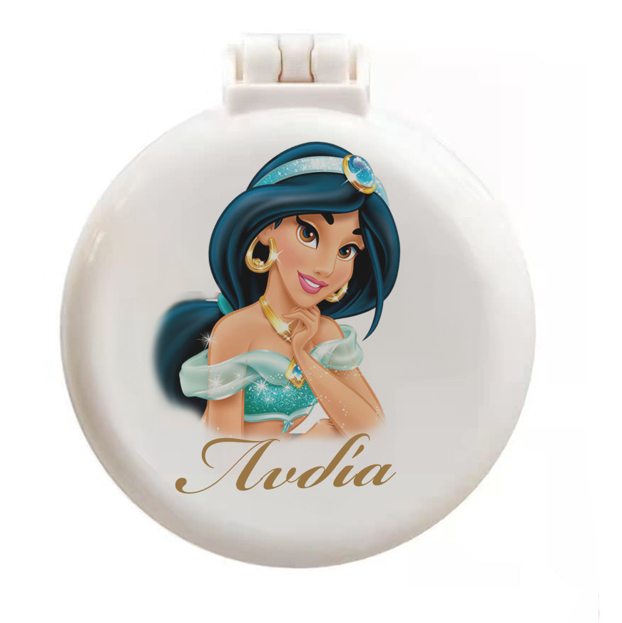 Προσωποποιημένο καθρεφτάκι με χτενάκι και θέμα Γιασμίν. Το απόλυτο δωράκι για να χαρίσεις στην κάθε καλεσμένη του πάρτυ, με το όνομα της!