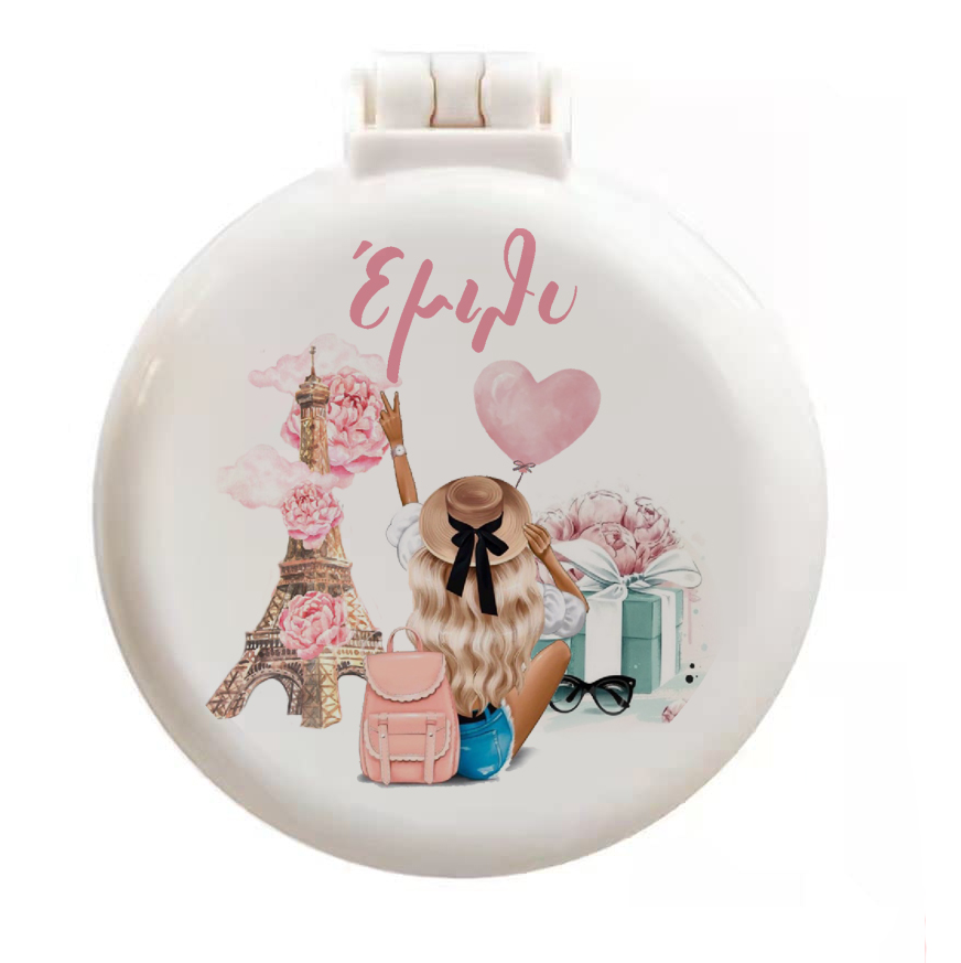 Προσωποποιημένο καθρεφτάκι με χτενάκι και θέμα Girl in Paris. Το απόλυτο δωράκι για να χαρίσεις στην κάθε καλεσμένη του πάρτυ, με το όνομα της!