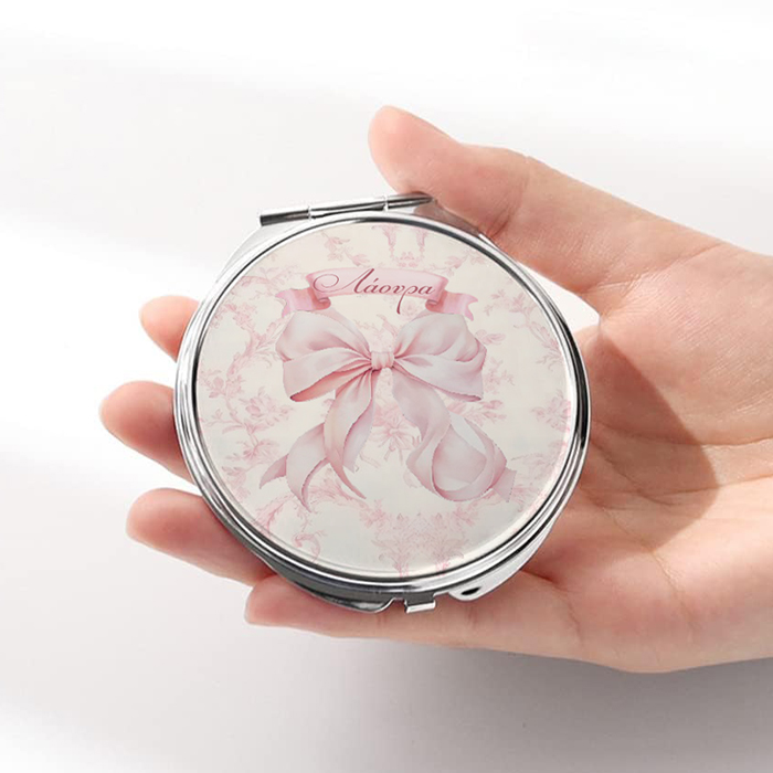 Καθρεφτάκι Ροζ Φιόγκος Ασημί Στρογγυλό