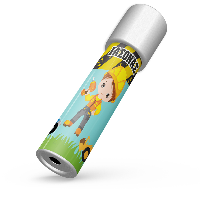 Καλειδοσκόπιο με θέμα Εργοτάξιο, που το περιστρέφεις και αποκαλύπτονται αμέτρητα σχέδια! Ιδανικό για δώρο στους μικρούς καλεσμένους του πάρτυ, που θα τους μαγνητίσει και θα τους οδηγήσει σε ένα ατελείωτο παιχνίδι με τις αντανακλάσεις του φωτός.