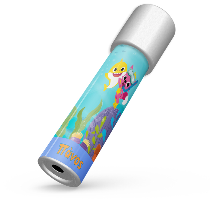 Καλειδοσκόπιο με θέμα Baby Shark, που το περιστρέφεις και αποκαλύπτονται αμέτρητα σχέδια! Ιδανικό για δώρο στους μικρούς καλεσμένους του πάρτυ, που θα τους μαγνητίσει και θα τους οδηγήσει σε ένα ατελείωτο παιχνίδι με τις αντανακλάσεις του φωτός.