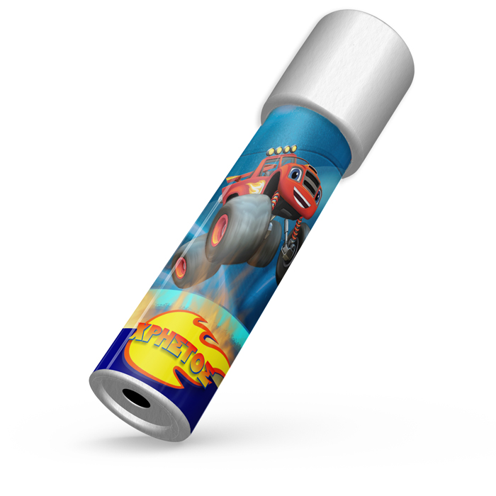 Καλειδοσκόπιο με θέμα Blaze, που το περιστρέφεις και αποκαλύπτονται αμέτρητα σχέδια! Ιδανικό για δώρο στους μικρούς καλεσμένους του πάρτυ, που θα τους μαγνητίσει και θα τους οδηγήσει σε ένα ατελείωτο παιχνίδι με τις αντανακλάσεις του φωτός.