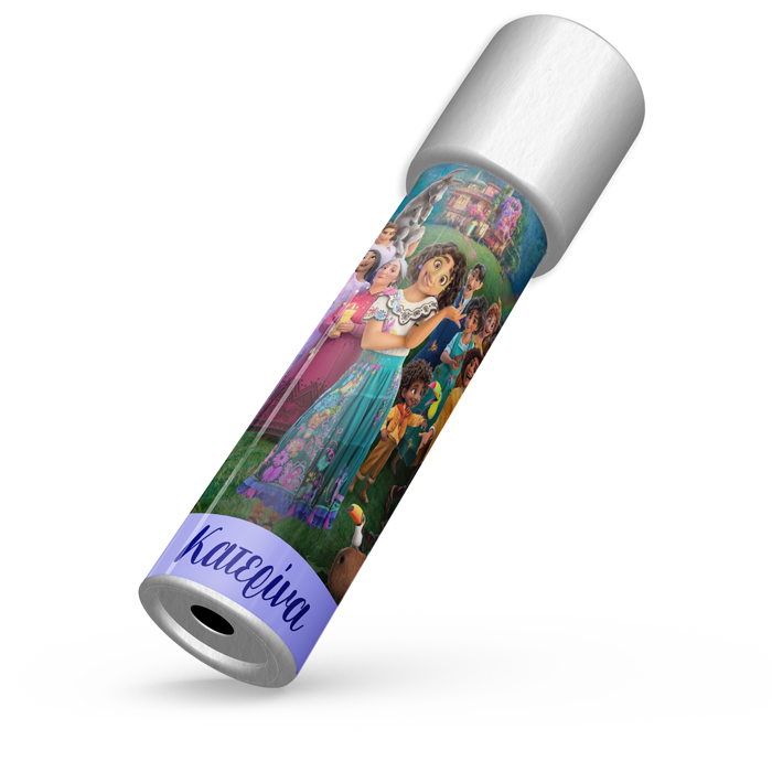 Καλειδοσκόπιο με θέμα Encanto, που το περιστρέφεις και αποκαλύπτονται αμέτρητα σχέδια! Ιδανικό για δώρο στους μικρούς καλεσμένους του πάρτυ, που θα τους μαγνητίσει και θα τους οδηγήσει σε ένα ατελείωτο παιχνίδι με τις αντανακλάσεις του φωτός.