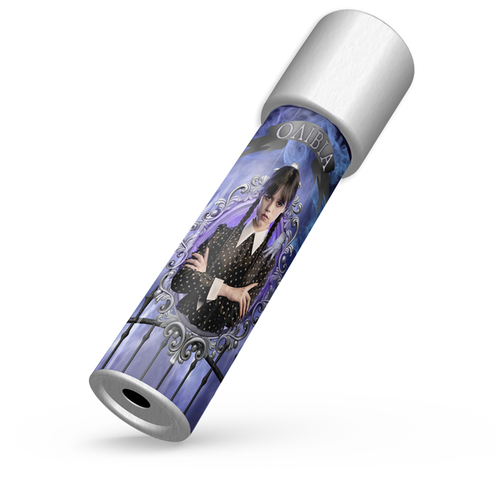 Καλειδοσκόπιο με θέμα Wednesday, που το περιστρέφεις και αποκαλύπτονται αμέτρητα σχέδια! Ιδανικό για δώρο στους μικρούς καλεσμένους του πάρτυ, που θα τους μαγνητίσει και θα τους οδηγήσει σε ένα ατελείωτο παιχνίδι με τις αντανακλάσεις του φωτός.