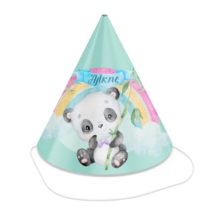 Μοιράστε στους καλεσμένους του πάρτυ σας, καπελάκια με θέμα τo Panda και τυπωμένο το όνομα της επιλογής σας επάνω και βάλτε τους όλους σε γιορτινή διάθεση!