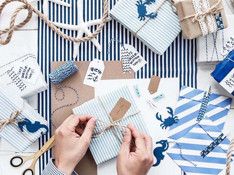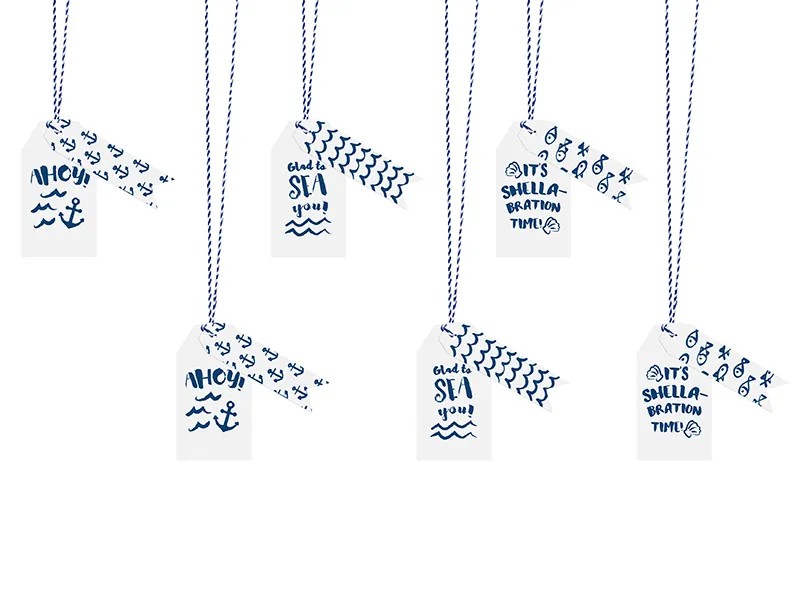 Καρτελάκια για δώρα με ναυτικό / θαλασσινό στιλ, κατάλληλα για παιδικό πάρτυ, βάπτιση ή δώρο με θαλασσί θέμα.
