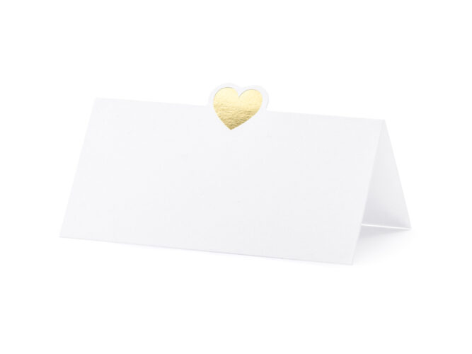 Καρτελάκια με χρυσή καρδιά, για να τοποθετήσετε στα τραπέζια της δεξίωσης.