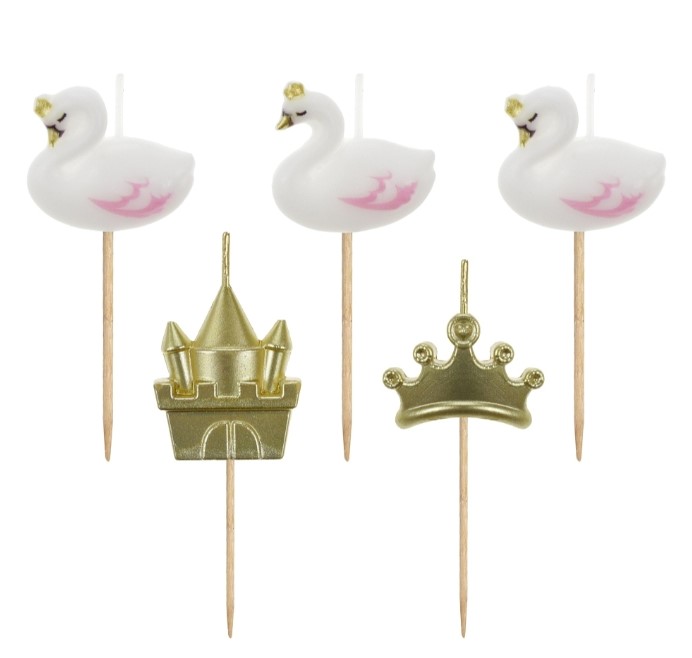 Κάνε την τούρτα των γενεθλίων σου να ξεχωρίζει! Κεράκια-οδοντογλυφίδες με σχέδιο κύκνους, κάστρο & στέμμα!