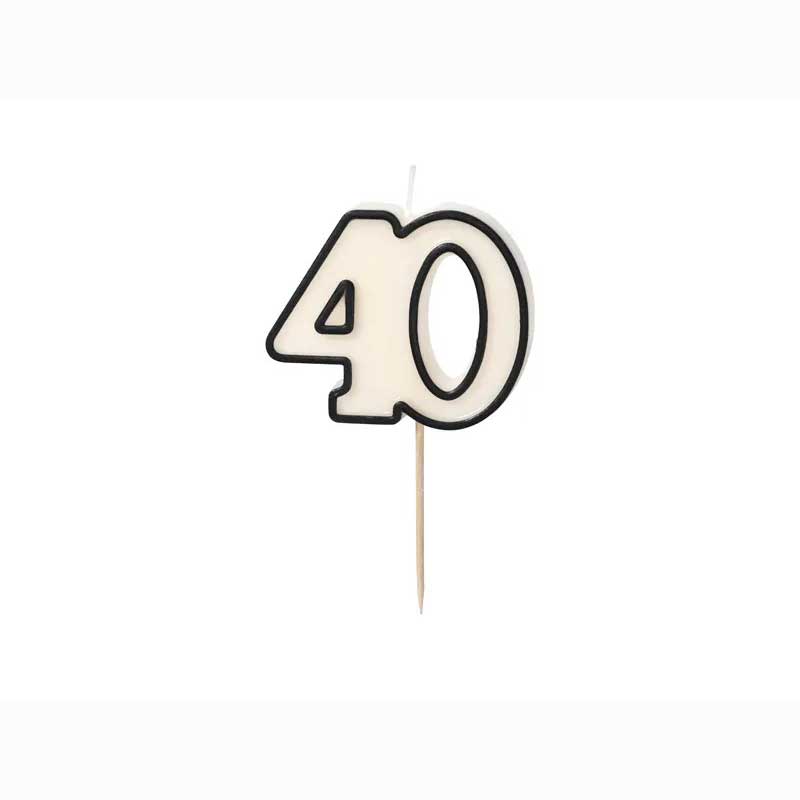 Κεράκι “40” κρεμ με μαύρο περίγραμμα για μια κομψή διακόσμηση για την τούρτα γενεθλίων στα 40αγενέθλια!