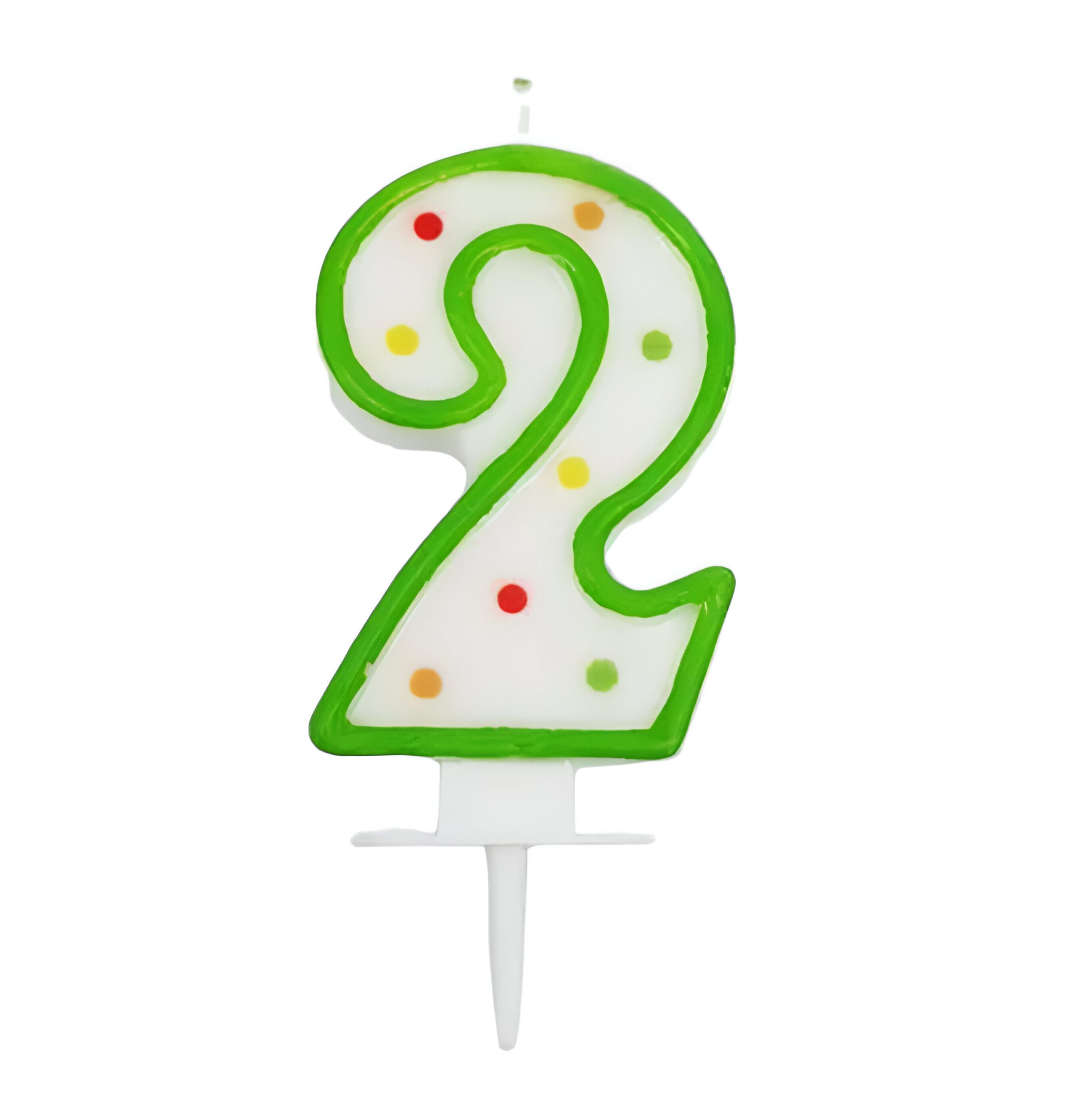 Κεράκι αριθμός 2 με πολύχρωμα πουά, για να διακοσμήστε την τούρτα γενεθλίων!