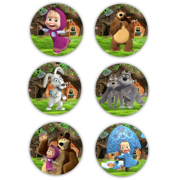 Κονκάρδες με θέμα την Μάσα και τον Αρκούδο, για να φορούν οι καλεσμένες του πάρτυ ή για να διακοσμήσετε τα αγαπημένα σας αντικείμενα με αυτές!