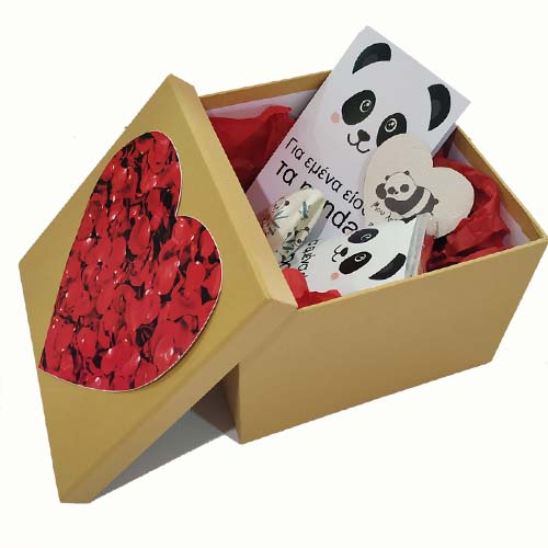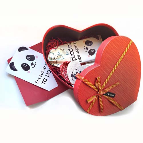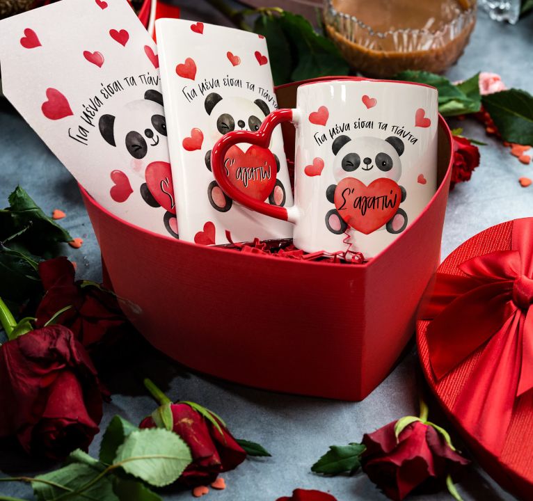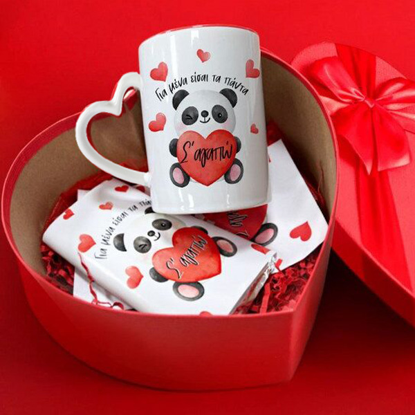 Κουτί – Αγάπη για Πάντα με σοκολάτα, κούπα, κάρτα για ευχές όλα με θέμα το αξιολάτρευτο αρκουδάκι Panda!